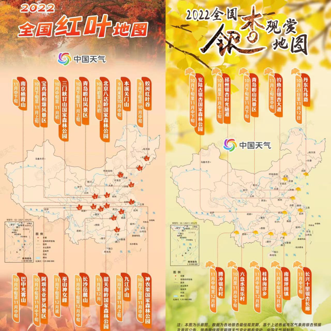 崂山风景区成为唯一一个既上榜中国天气网《2022全国红叶地图》,又上榜《2022全国银杏赏叶地图》的观赏地。
