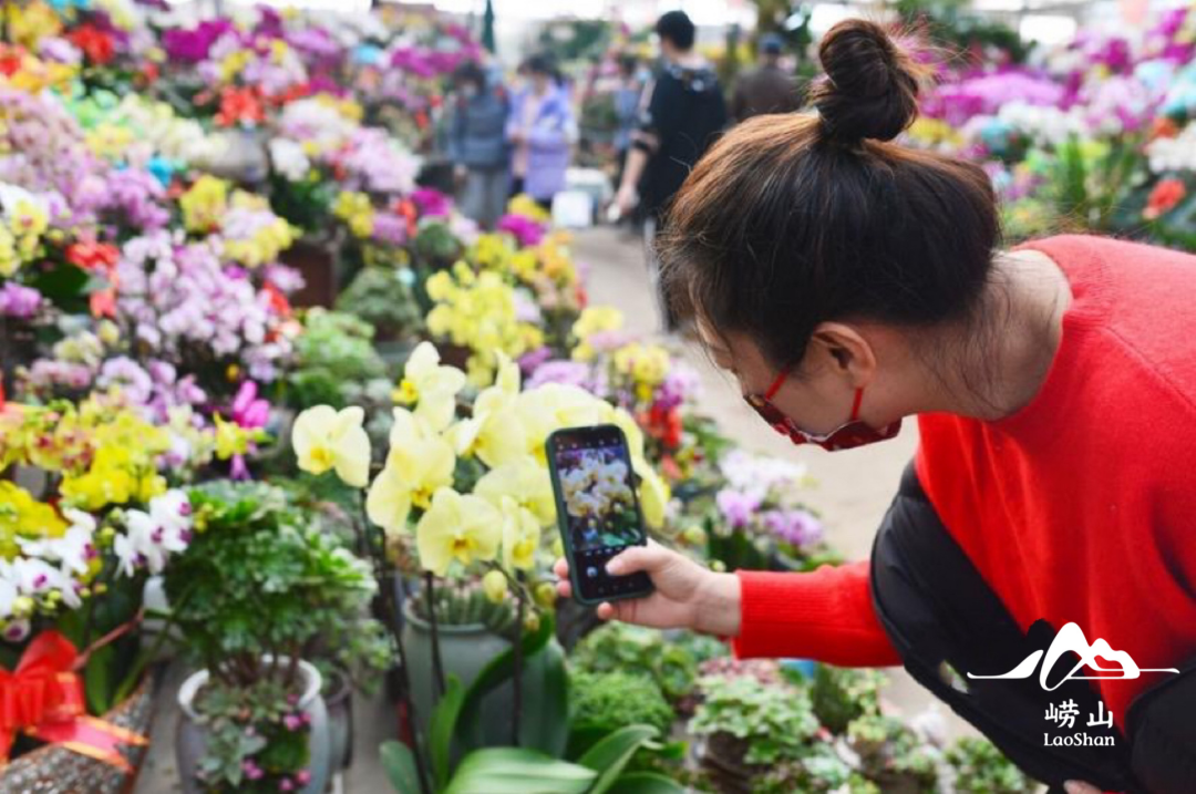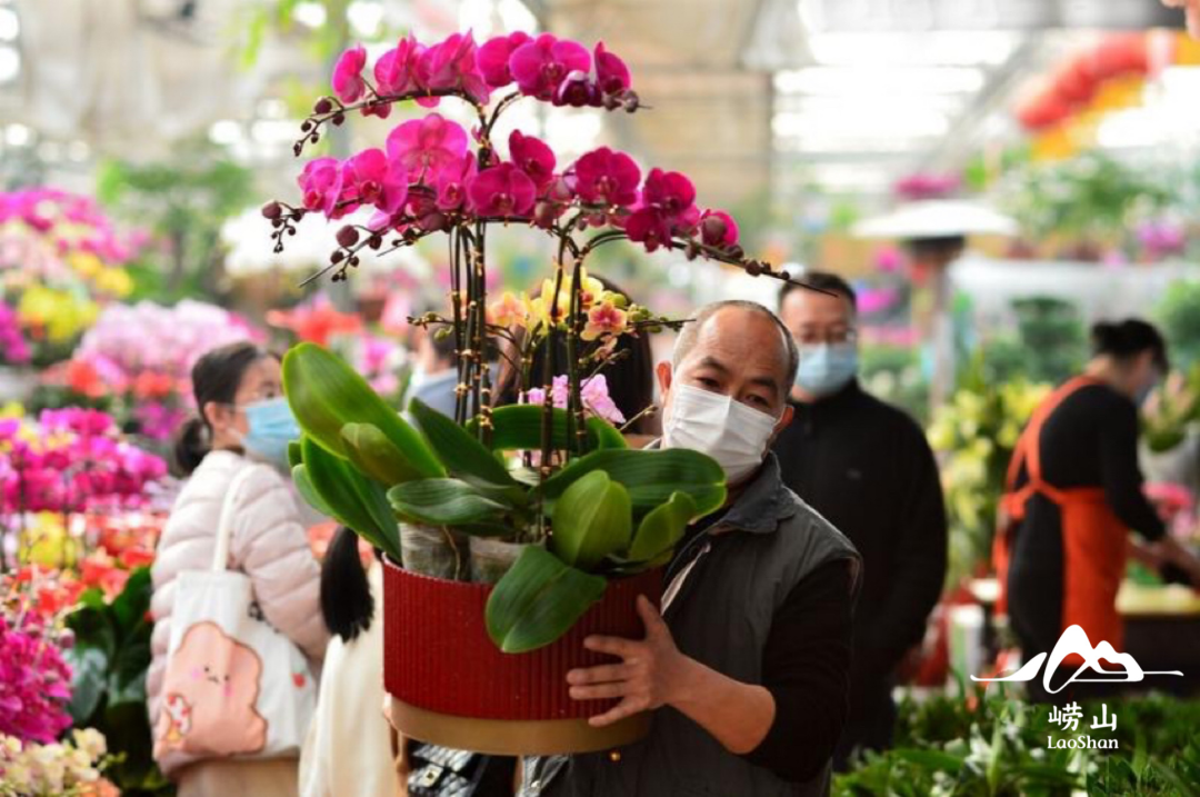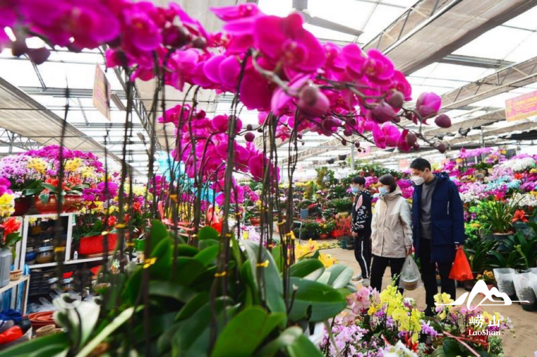 春节临近,崂山枯桃花卉市场已开启“春节模式”,迎来年宵花销售旺季,人们徜徉“花海”之中选购鲜花,迎接新春佳节。