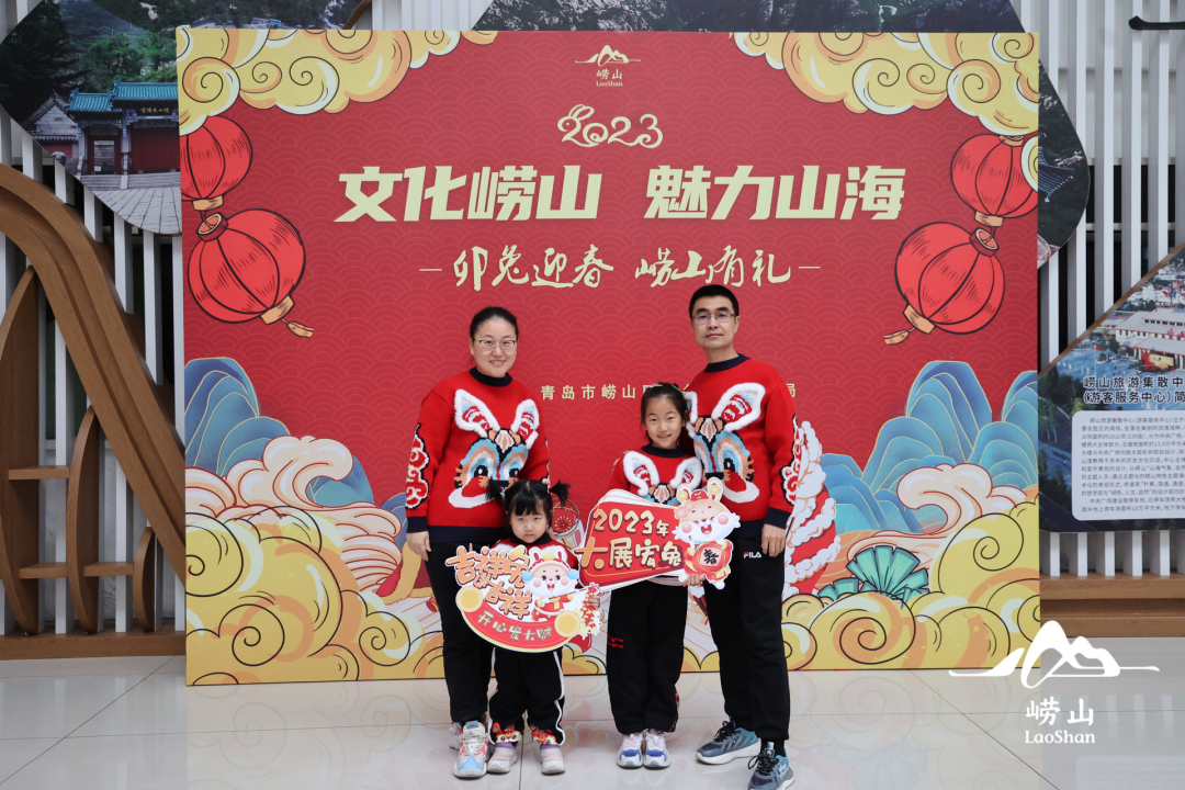 大年初一,崂山风景区一派喜庆欢腾的景象,游客在这里领福贴、祈福愿、挂红绳、收玩偶、拍照打卡……各类精彩的文化活动应接不暇。在仰口游览区,伴随着绵长的钟声,游客张先生一家脸上洋溢着幸福和快乐,容光焕发,他说:“我们每年的大年初一都来仰口敲钟祈福,崂山有福寿文化底蕴,钟声一响,特别有仪式感。”在九水游览区,“迎新春、寄新语”活动吸引不少游客参加。初一这天,景区为第一批入园游客送上福兔玩偶,游客还可以在祈福带上写上新春寄语,许下新年心愿。在流清、太清、巨峰等游览区,也是一派热闹的景象,景区的传统文化活动和精彩互动活动引得游客一家老小争相参与,欢声笑语让新年第一天的崂山更加充满活力和魅力。