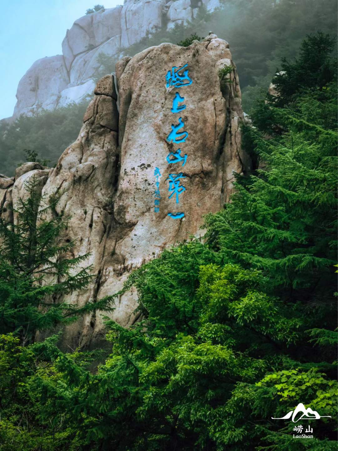 “海上名山第一”石刻由我国著名书法家武中奇先生在95岁时为崂山题写,笔力苍劲,犹如游龙飞凤。它是字又是画,蕴含着老人对崂山的无限深情。