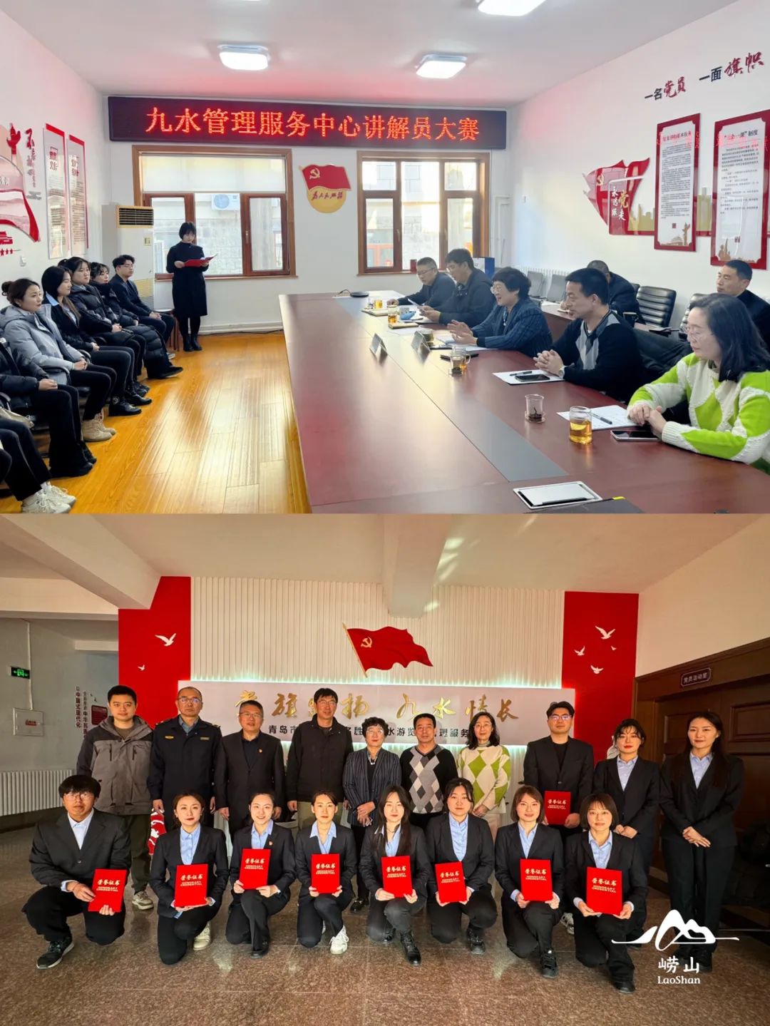 1月26日,崂山九水管理服务中心在中心一楼会议室举行讲解员大赛,中心主要负责人、分管负责人、局旅游管理处四级调研员曾亚卫及办公室副科长王蕾担任评委,中心科级以上干部现场观摩。经前期培训、预选,此次比赛共15名选手参加。