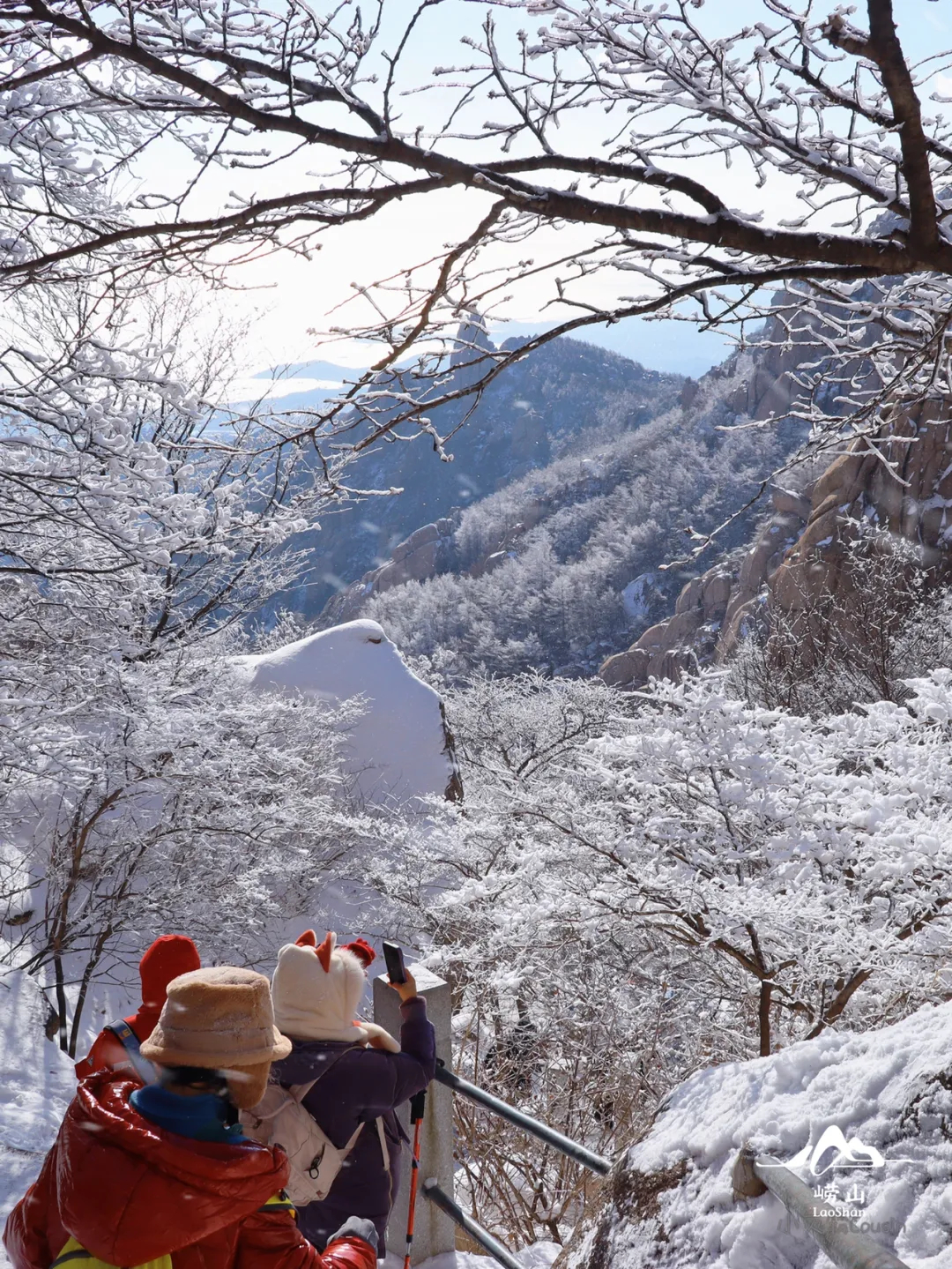 赏雾凇,记得安全与保暖。保暖必备:雾凇观赏通常在寒冷的天气中进行,一定要穿上厚厚的羽绒服、保暖的帽子、围巾、手套和防滑的鞋子。安全出行:崂山山路在冬季可能会有积雪和结冰的情况,可携带冰爪,行走时要小心谨慎,尽量沿着已经开辟好的道路前行,避免进入景区未开放的区域。文明旅游:在欣赏雾凇美景的过程中,不要随意攀折树枝、破坏雾凇景观,让这份自然之美能够长久地留存下去,供更多的人欣赏。