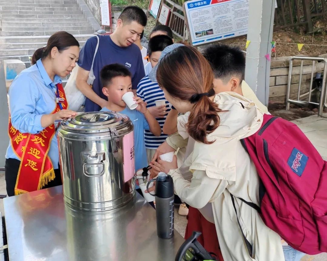 这些清凉补给驿站不仅是休憩点,更是景区 “清凉关怀” 的实体化身。一杯凉茶,一碗绿豆汤,传递的是崂山对游客 无微不至的体贴。这份心意,如同夏日里汩汩流淌的清泉,悄然滋润每一位游客的心田。不少游客对景区的这一暖心举措赞不绝口,来自济南的张先生兴奋地说:“原本爬山爬得又热又渴,没想到景区免费送饮料,这崂山可乐还是青岛特色,喝着特别带劲,感觉整个游玩体验都更棒了!”