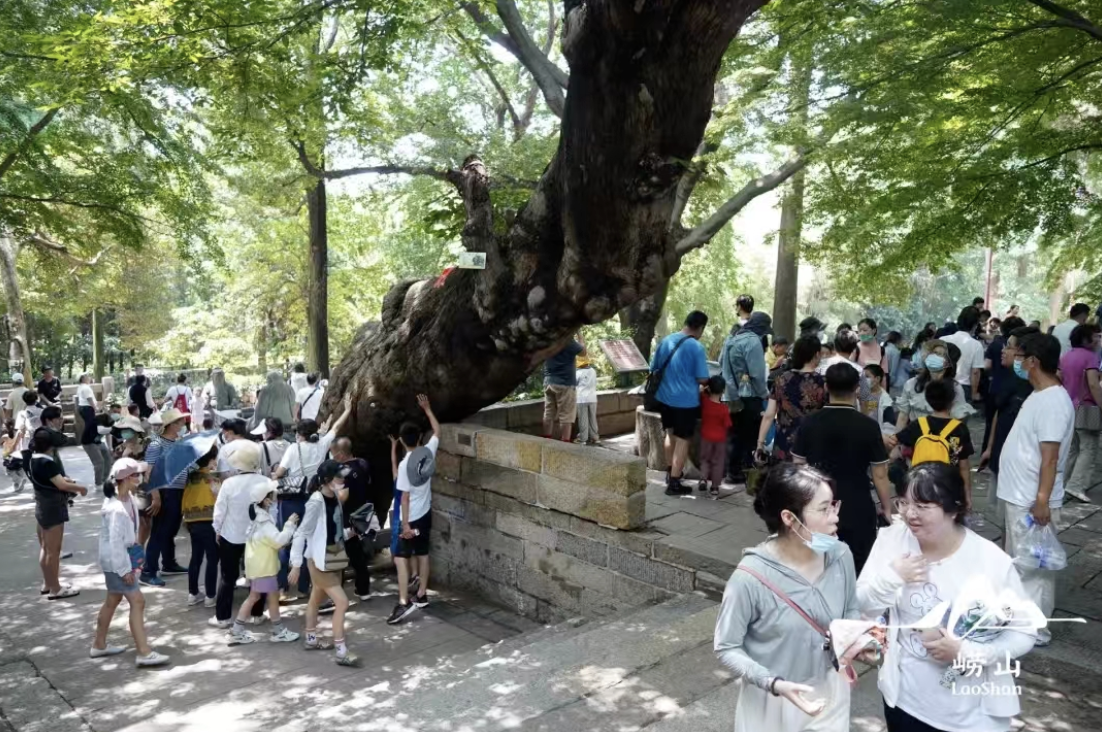 位于崂山太清游览区的太清宫,此树距今已有1000多年的历史,又因植于唐代,称“唐榆”崂山名树中的珍品。主干盘曲如虬龙探海,浓密枝叶遮天蔽日,立于树下,顿感清风徐来,心静神安。在崂山流行着“摸摸老龙头,一世永无愁”这一句话,所以在小伙伴们爱的抚摸下,我们的老龙头榆已经被盘得圆润发亮啦!