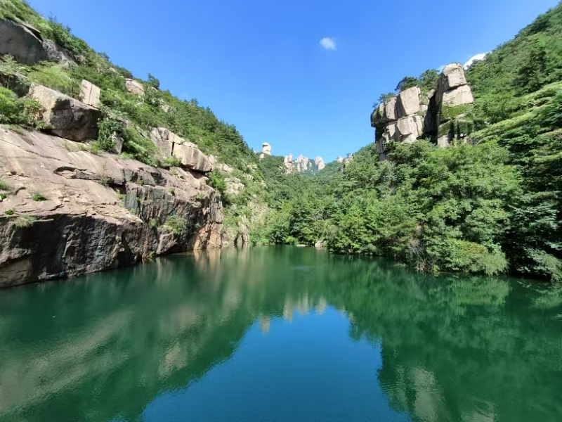 如果说崂山的山是豪迈的,那么九水就是秀美的,初秋的九水十八潭,负氧离子满满,是天然氧吧,沿着木栈道漫步,随处可见飞瀑流泉,清凉宜人。这里是徒步爱好者的天堂,也是文艺青年寻找灵感的好去处。