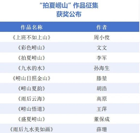 获奖名单公布感谢所有参与的崂友们记录下这个美好的夏天(以下排名,不分先后)