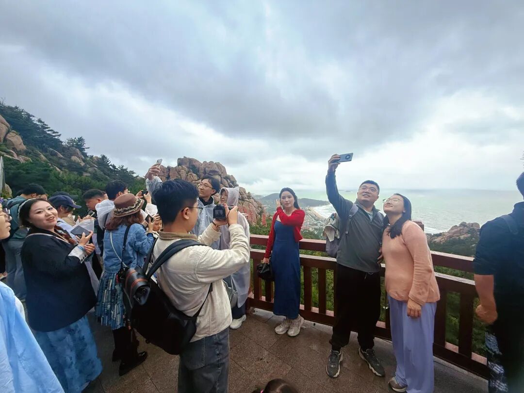 雨后崂山人气不减,景区内秩序平稳,游客们有序排队进入景区,文明游览雨后的山海风光,为大家点赞