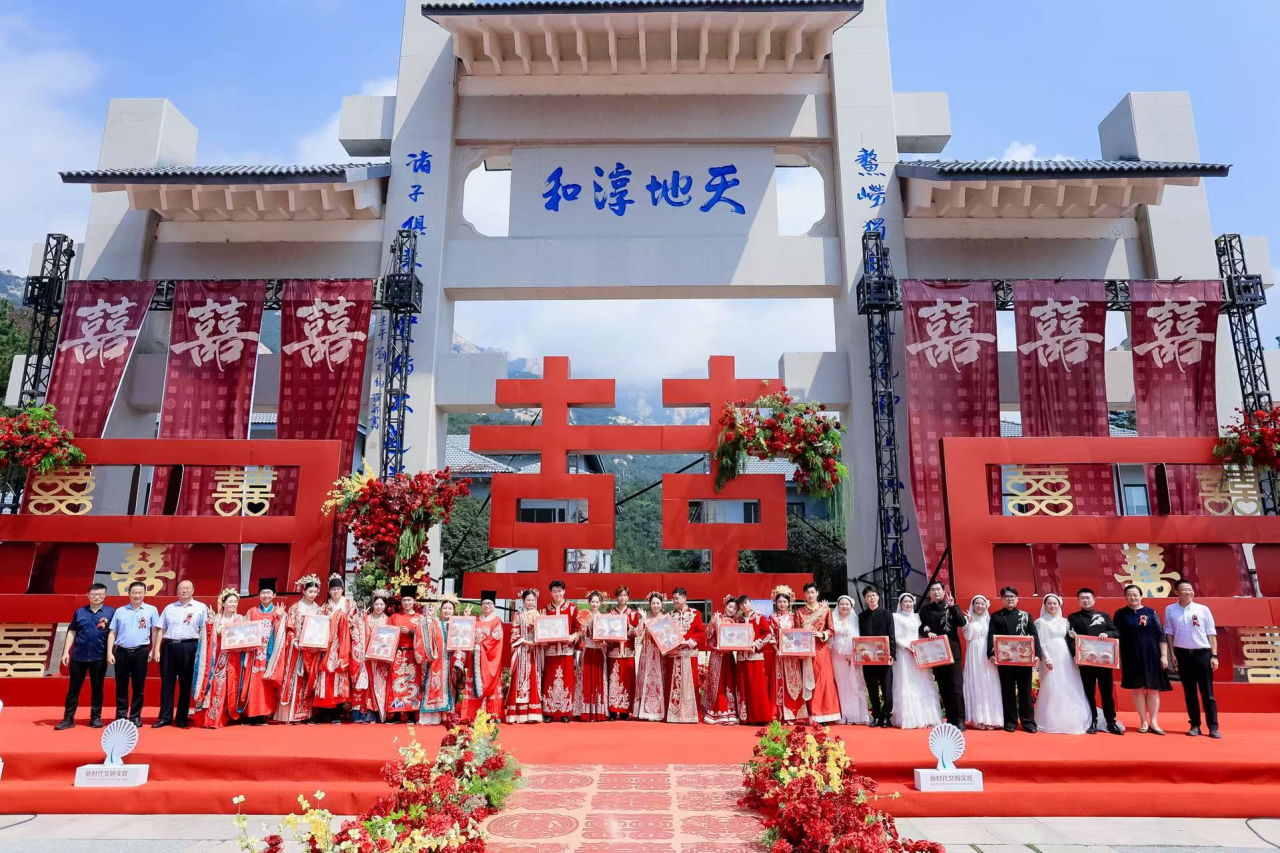就在今天!十余对新人在巨峰天地淳和广场参加了一场难忘的新时代集体婚礼!新人以汉唐、近代、现代三种风格演绎跨越时空的忠贞誓言。“七夕限定”婚姻登记领证点,让预约登记的新人感受到“以山为证、以海为媒”的浪漫,灵旗峰的先天桥变身成为“空中鹊桥”,海誓山盟并蒂连空中鹊桥姻缘显,七夕氛围简直拉满!