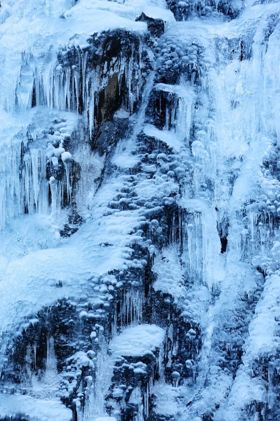 九水最大的冰瀑高达十余米,形成的冰瀑奇观令人震撼,仿佛时间都在此凝固,来到了一个梦幻的童话世界。
